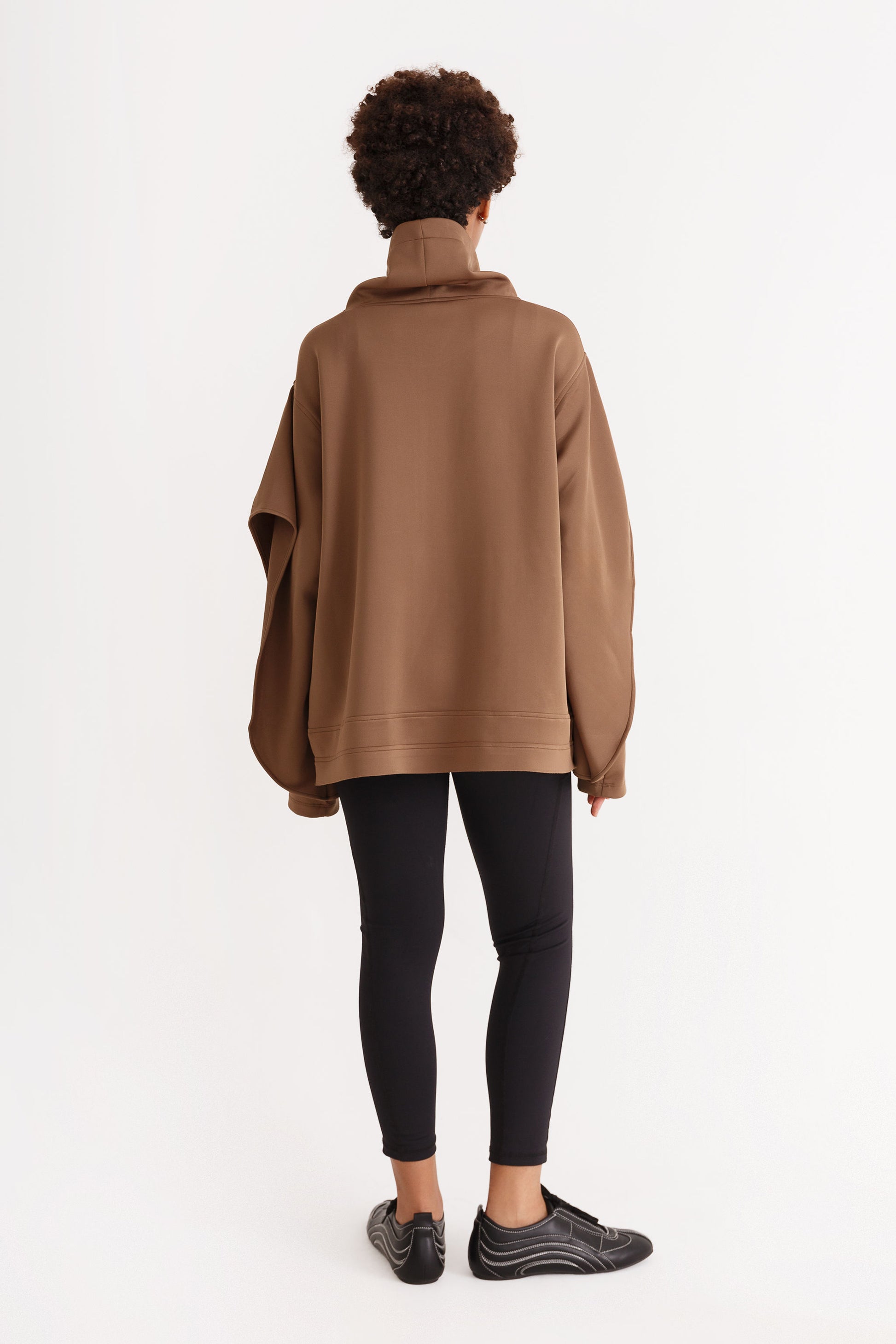 The only acceptable partner for the Cloud Nine Pants. This comfy sweater is the perfect top layer—it’s neoprene, asymmetric, and carries a subtle Japanese-inspired flair. It’s the "throw-on-and-instantly-look-cool" piece that perfectly nails the balance between cozy and editorial. Comes in olive green and chocolate to match the vibe.